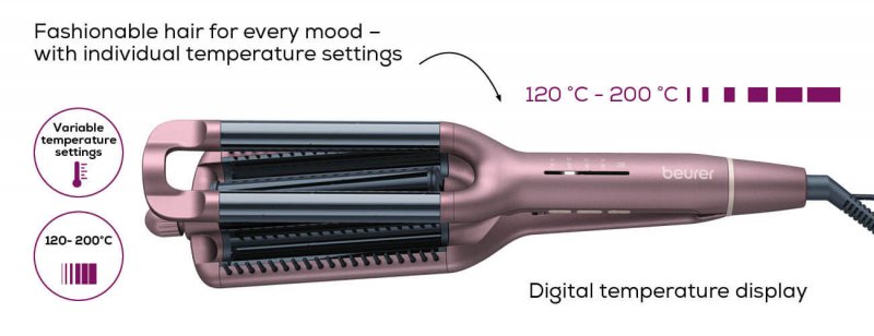 حالت دهنده ی چند کاره/سطوح درجه حرارت فردی از 160 تا 210 درجه سانتیگراد/پوشش سرامیک و کراتینه برای محافظت از مو/نمایشگر دیجیتال دما/قفل کلید و خاموش شدن خودکار پس از 30 دقیقه