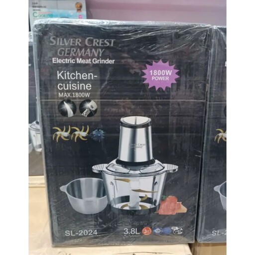 خردکن دوقلو سیلور کرست دارای دو عدد کاسه پیرکس و استیل ظرفیت کاسه ها ۳.۸ لیتر توان مصرفی ۱۸۰۰ وات موتور ۲ سرعته دارای دو عدد ۶ تیغ پرسی تیتانیوم طلایی دارای